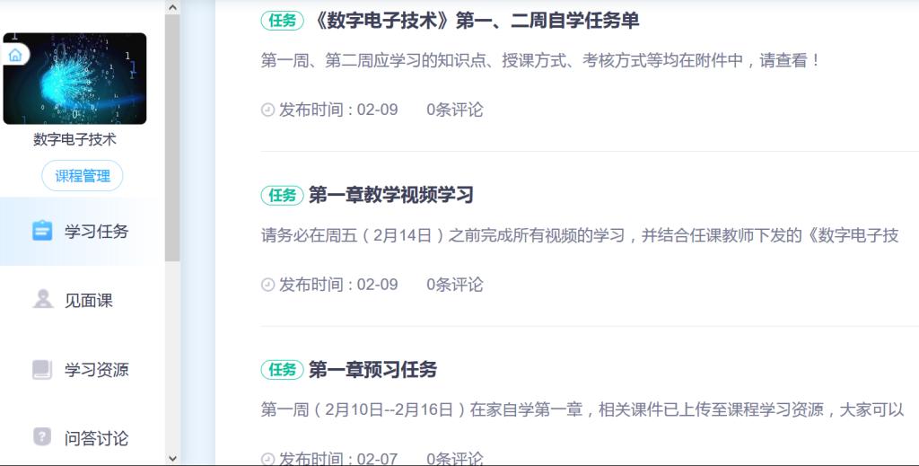 图2 《数字电子技术》开课前发布的学习任务