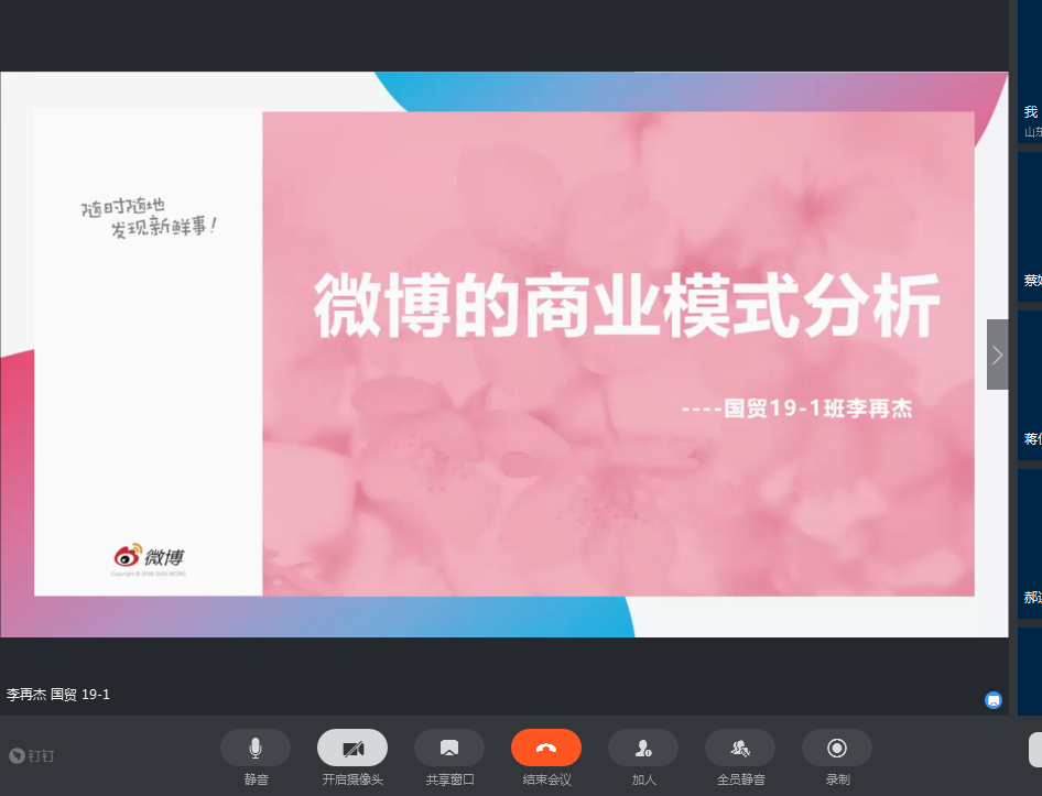 在教师与学生都已做好准备的前提下,必须选择一个稳定有效的网络教学工具。在开课前,我首先针对网络教学工具进行了调研,通过对不同网络教学软件进行比较,同时借鉴高中、初中老师们的先期经验,选用了性能稳定、互动性好的“钉钉”作为《创新管理》线上课堂的教学工具。该工具允许上百名学生同时在线,画面稳定、声音清晰,与学生即时互动几乎不存在卡顿,尤其是屏幕共享功能,既可以把老师的电脑画面传递给所有的学生,必要时,也可由任何学生发起屏幕共享,将学生的屏幕共享给所有人,能够确保师生间的有效互动。
