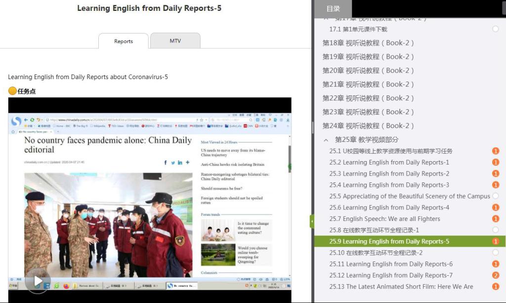 战“疫”情《大学英语》课程网章节主页