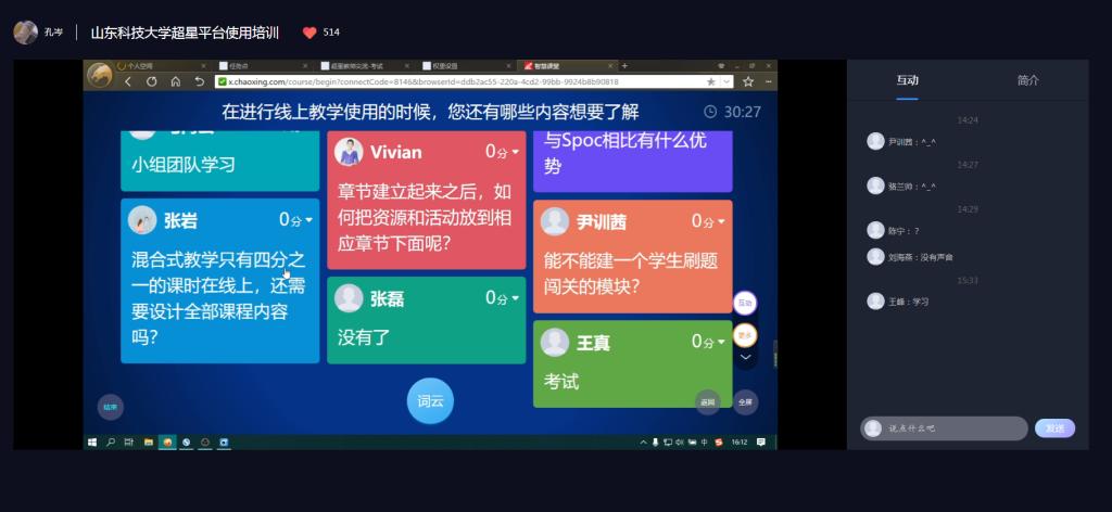 为进一步推动信息技术与教育教学深度融合,提高我校教师信息化教学能力和水平,3月18日至22日,学校联合超星、智慧树和中国大学MOOC举办了线上线下混合式教学专题培训。